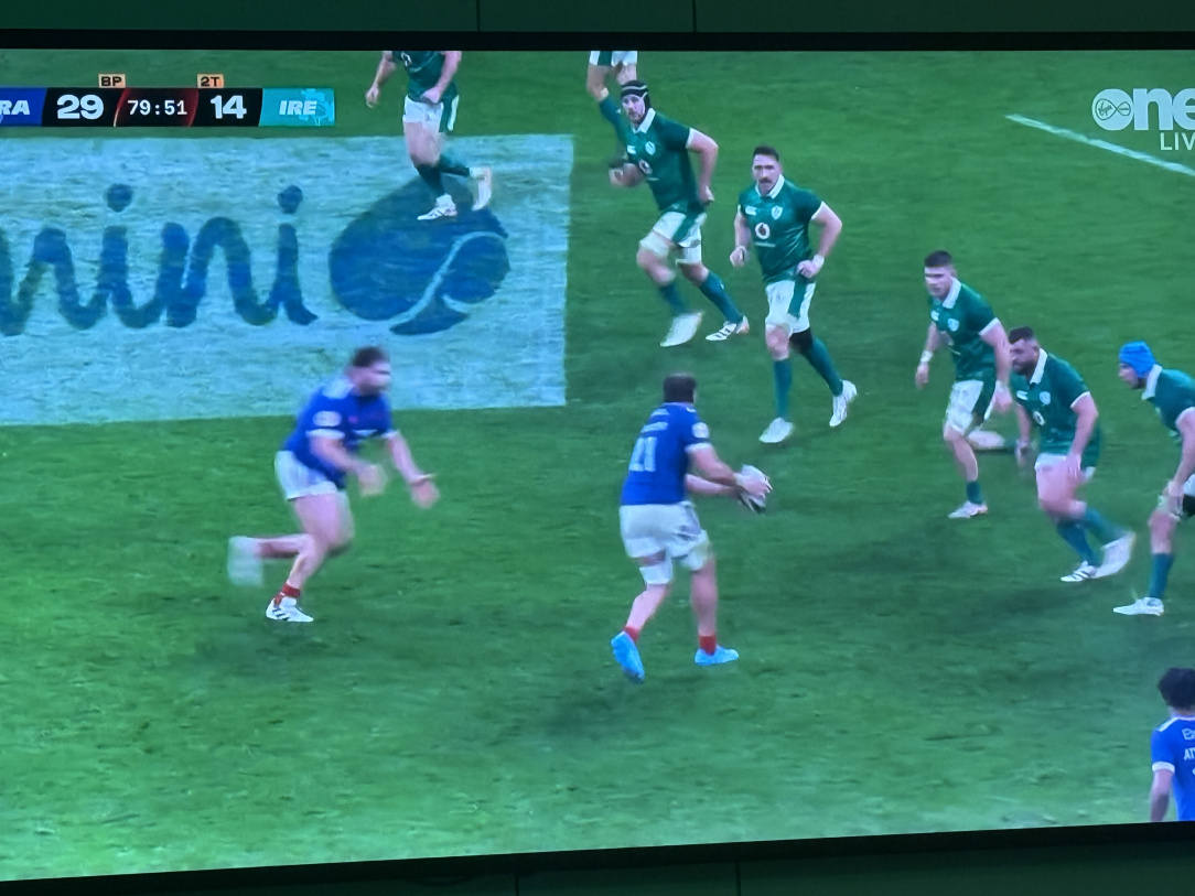 From 60-65mins there were 3 prime attacking opportunities we had in their half and we kicked every time. That is not players makint ad-hoc decisions, individual kicks maybe, but a pattern means it was the system the coaches sent them out with even after a full half of evidence it wasnt only not working, Ireland were losing serious ground on every kick. The coaches don’t have confidence in our back line’s ability to score, that’s the real crisis here.