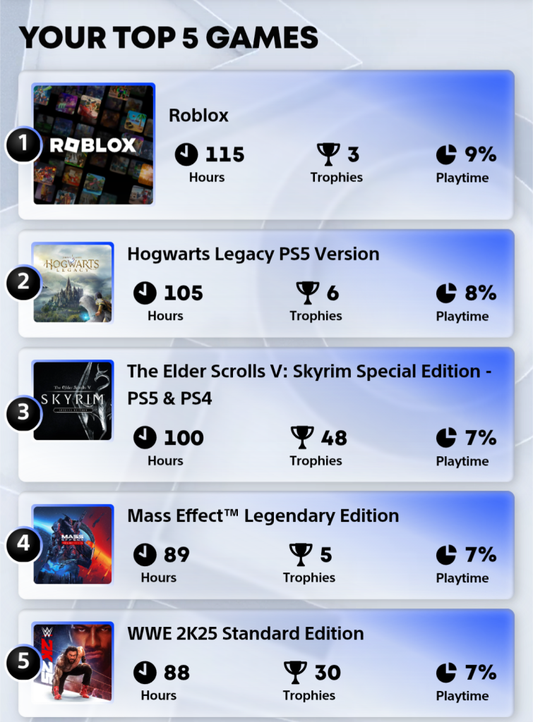 I thought this year was a quiet one… evidently not😂 Fortnite not in top 5 for first time in a good few years (kids were exclusively playing that till this bloody Brain Rot obsession of late)