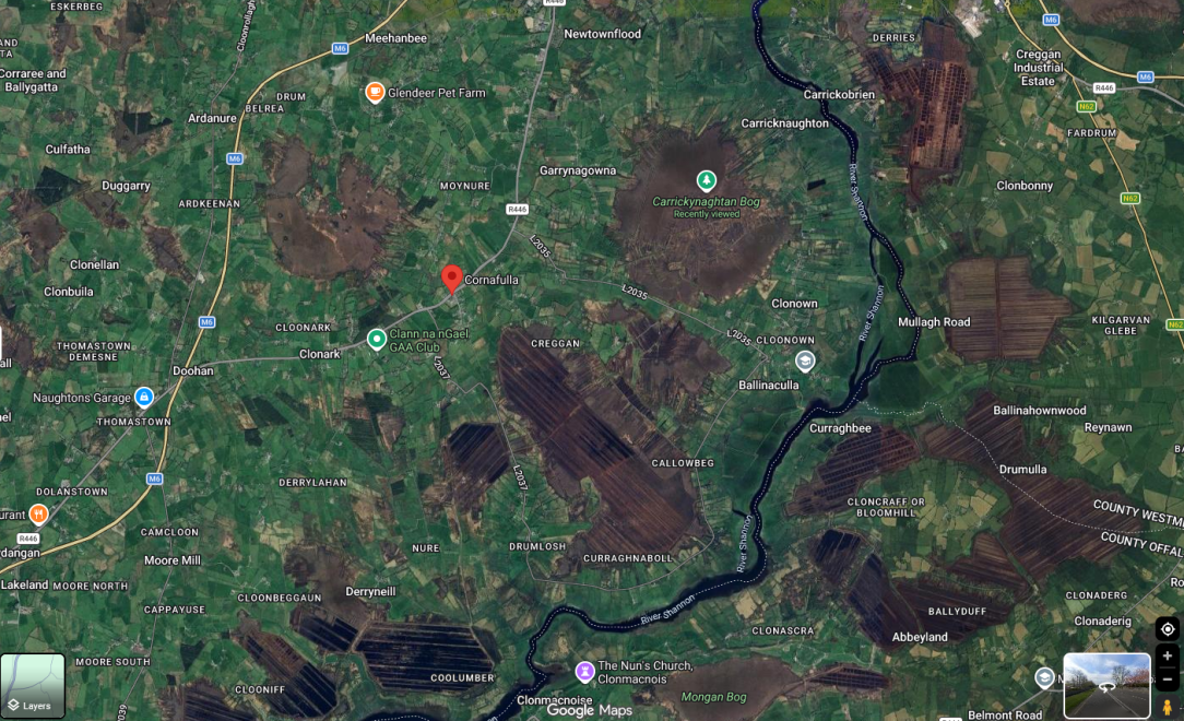 Do you think it was the locals or BnM who turned it brown. Large turbines need deep foundations and service roadways. 800 metres from Clonmacnoise means no problem with rewetting as the Shannon will supply more than enough water.