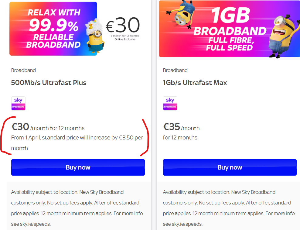 Thats why i avoided Vodafone and Eir cause they had the indexation increase in April but sky didn't mention it. Looks like its not avoidable anymore.