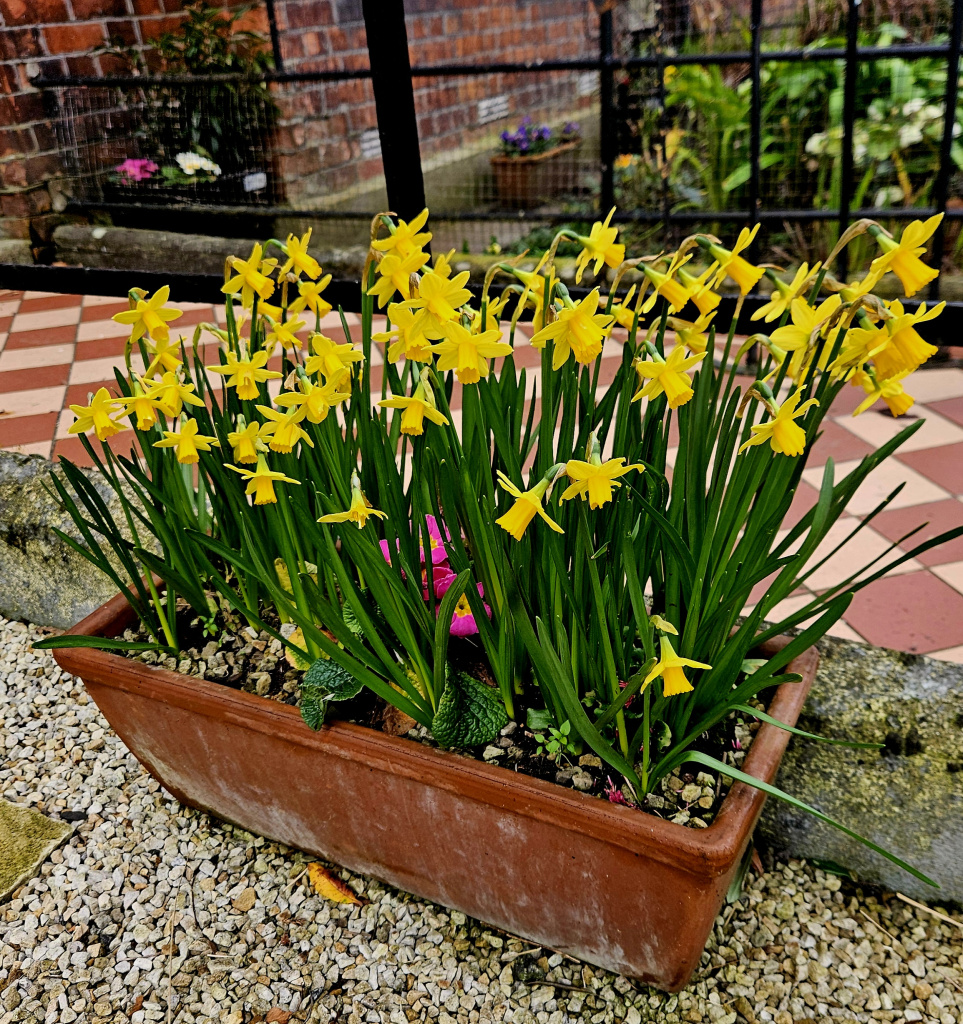 Planted my pot of red cyclamen and a few other spring plants yesterday .It's outside the back door in the rain .