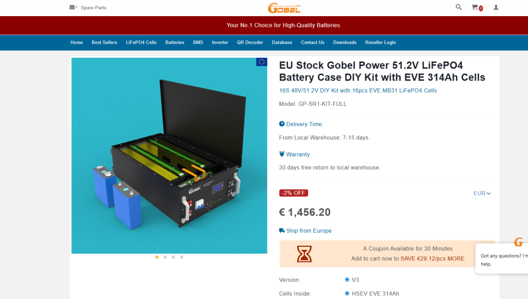 Any thoughts on this: https://www.gobelpower.com/eu-stock-gobel-power-512v-lifepo4-battery-case-diy-kit-with-eve-314ah-cells_p262.html