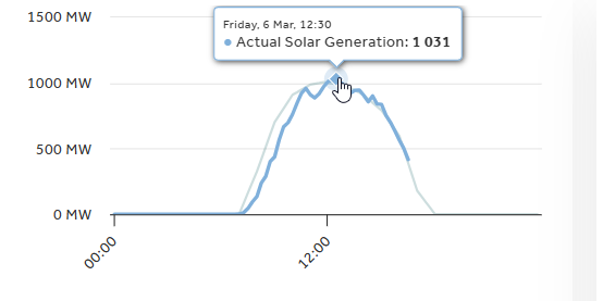 Over here, Tuesday's solar peak was unsurprisingly beaten today and Ireland passed 1GW of generation a fortnight before the equinox.