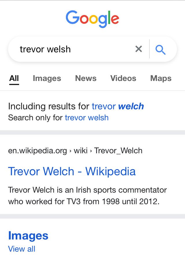 Ah! one of the greatest and most loved sports pundits, ah but I spelt it wrong in fairness, Trevor Welch.