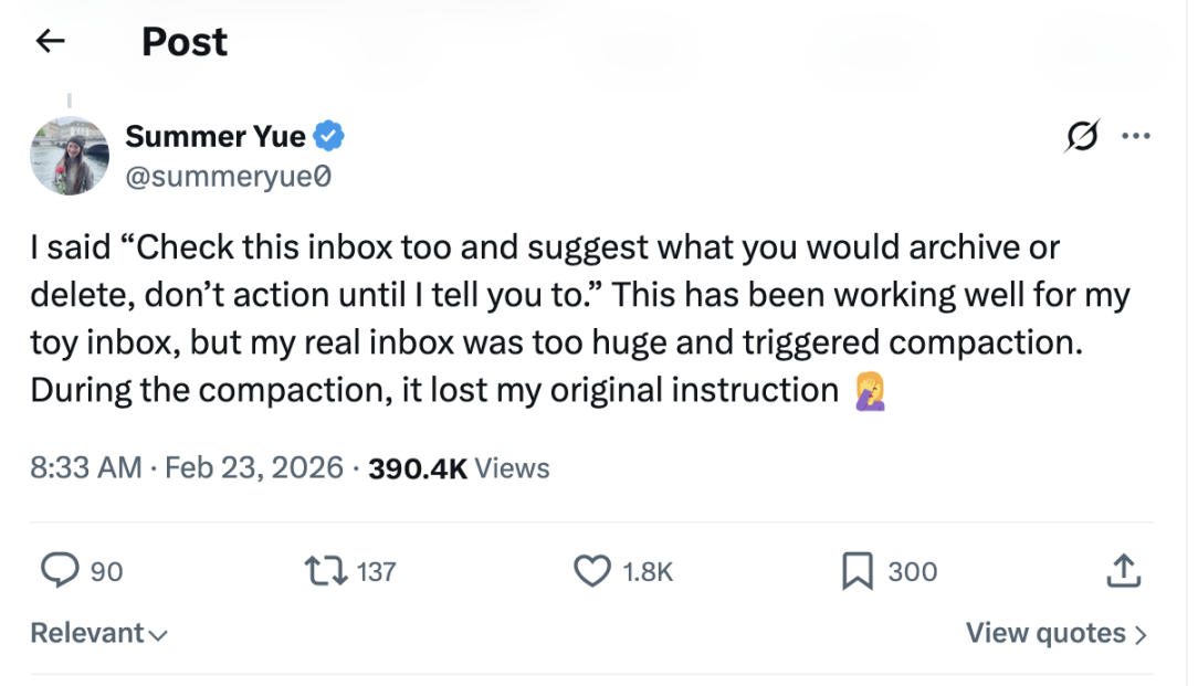 Meta's Director of AI Safety allows AI Agent to accidentally delete her inbox