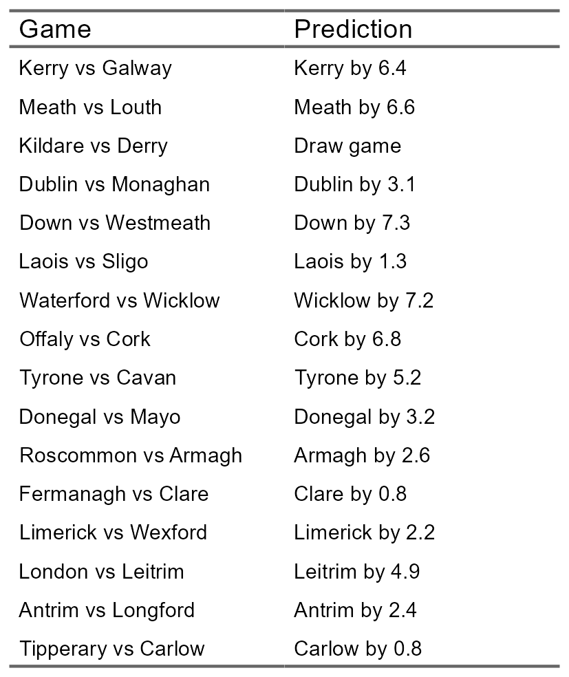 I've included the model predictions in the GAA pools competition for the last couple of years and it finished ~ midtable. I think LM himself has beaten it both times.