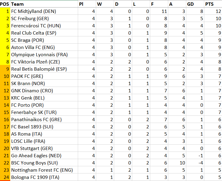 Panathinaikos FC (GRE)/Nottingham Forest FC (ENG) V FC Midtjylland (DEN)/Real Betis Balompié (ESP)