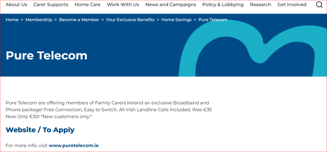 Pure are also offering Broadband and a land line for €30 per month through Family Carers Ireland.