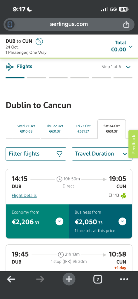 Anyone know if this is a glitch? EI are selling economy for more than business on DUB-CUN, is there a reason for that?