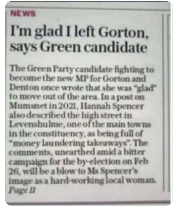 Getting back to UK politics, as per the thread title, Hannah Spencer seems to be yet another Green whose policies for being green are only for the plebs, as well as a "local" MP who doesn't think much of the locality: