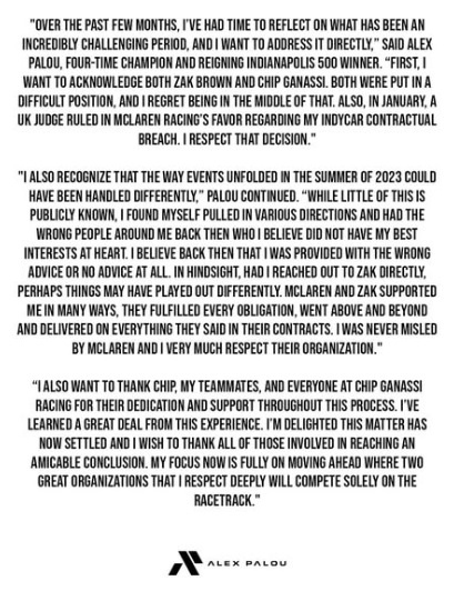 Mclaren have won the court case against Alex Palou to the tune of $12m