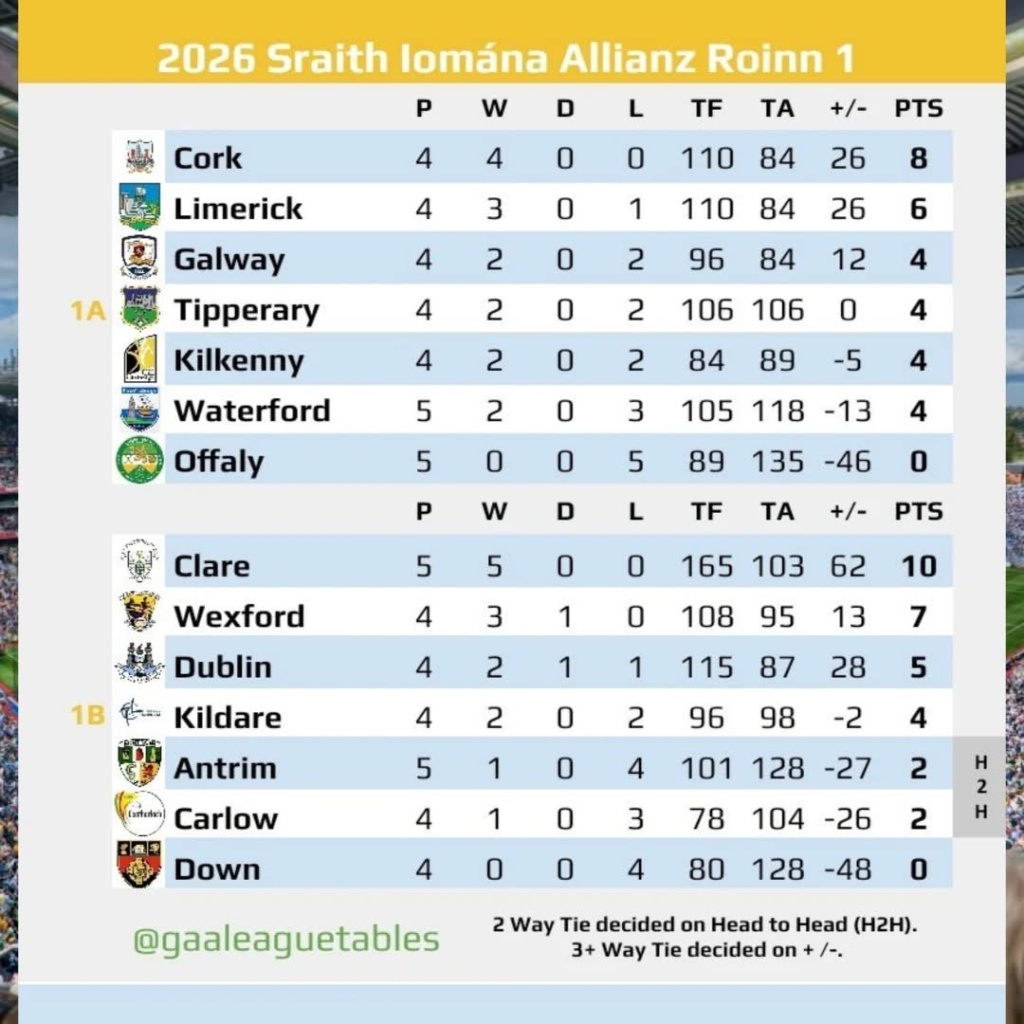 We are down then if we lose next week from looking at the league table there as we will have lost to Kilkenny, Galway and Tipperary so they will have us on head to head and if it goes to points difference ours is the worst. Division 1a is where you want to be next year so I'd find it hard to believe that the team was trained hard during the week to put that at risk today.