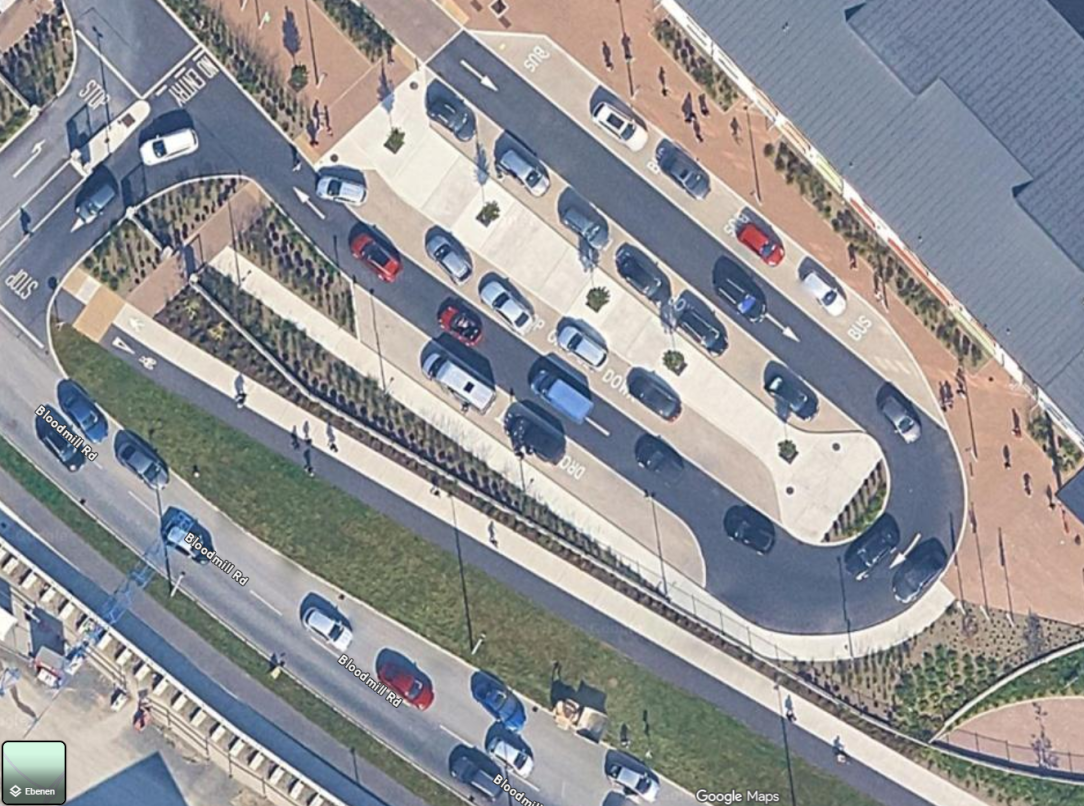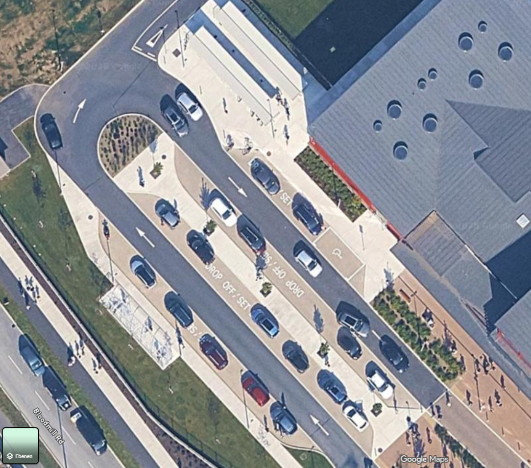 Even the new secondary school is car driven as they built a dedicated DROP OFF / SET DOWN zone which goople maps nicely captures circa 50 cars navigating through it.