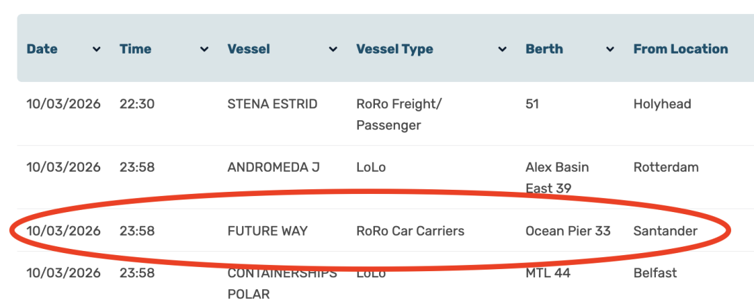 There's no other sailing scheduled into Dublin for another few days after that one.