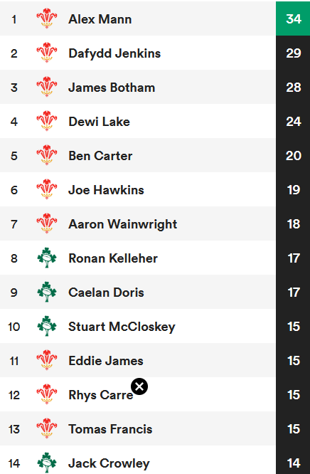 16m off 14 carries… but he put in the hard yards in fairness, can't fault the effort with ball in hand. I just thought he went a bit missing defensively again in a tight game this 6N and is prone to silly penalties. Maybe I'm being harsh.
