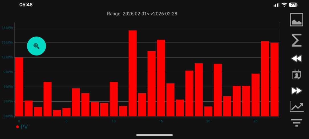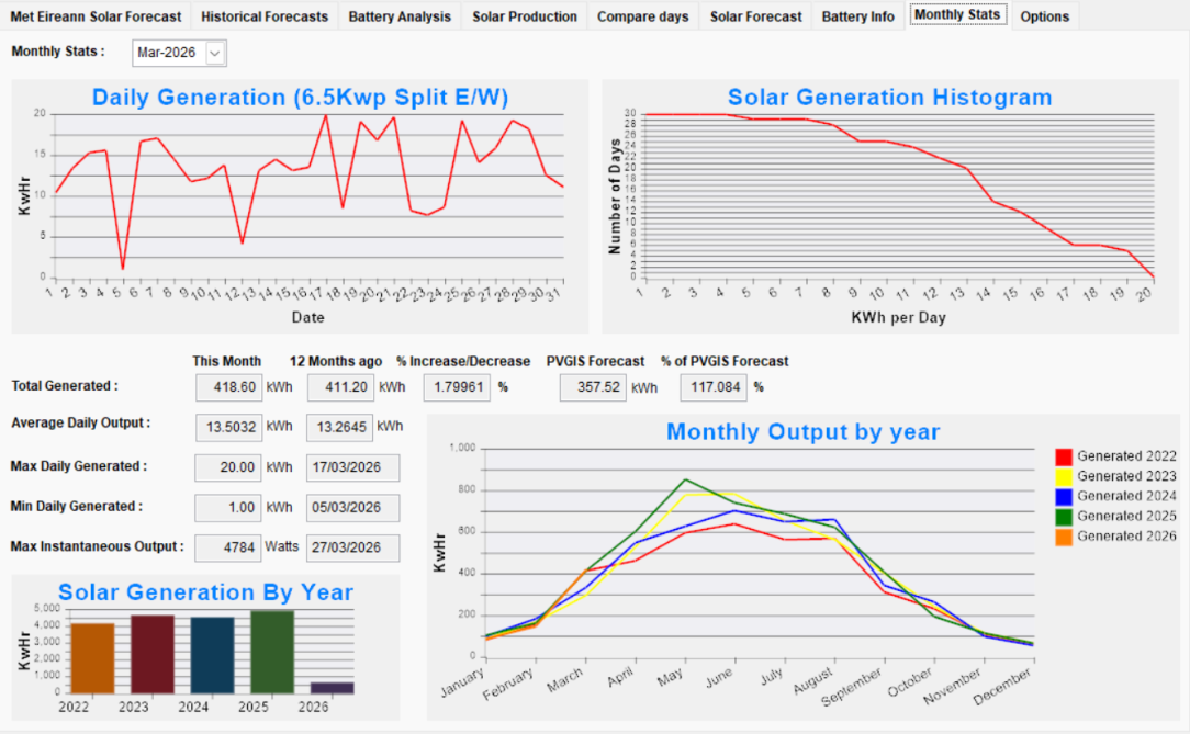 Best generation day so far in 2026 was March 6th at 48 kWh, forecast for tomorrow is good hopefully it'll challenge that.