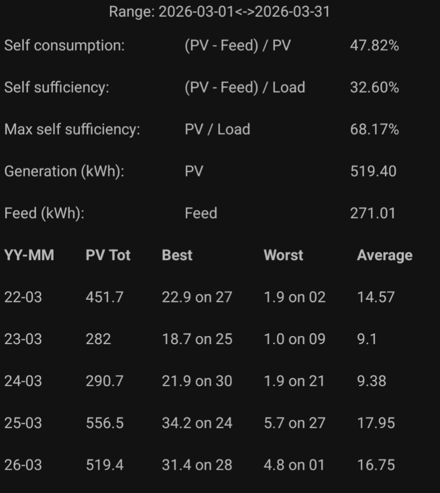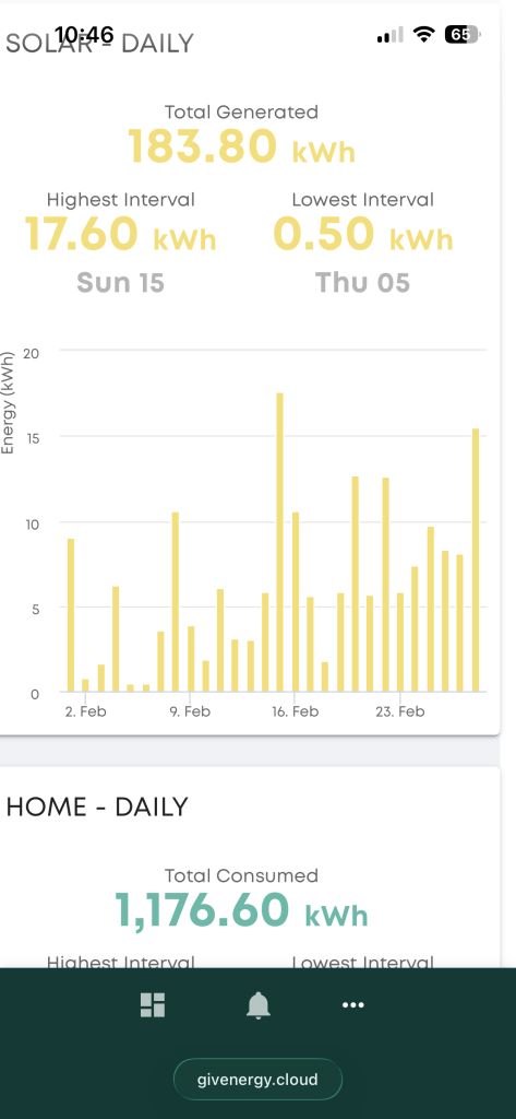 hmmm wasn't really expecting it as there hasn't been a lot of consecutive all day blue skies , but this March is the highest yield I've had since I added panels in March 2023. I guess the main thing was that there were few really "crap days" …..and that it's been solid generation for a lot of days rather than a week or so of epic days followed by rain etc. Nice to see after the rubbish Feb we had.