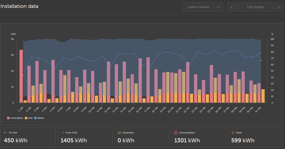dark days are over 50kwh so far In the first 3 days of March.