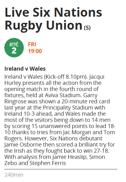 RTE expects we were all watching the rugby football.