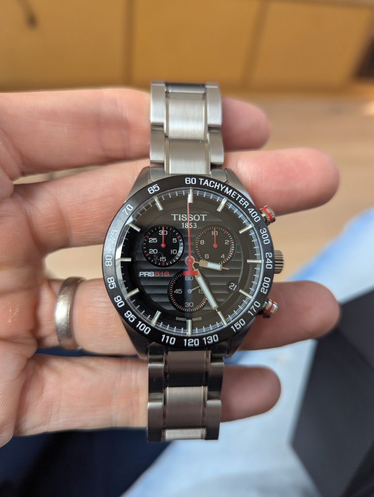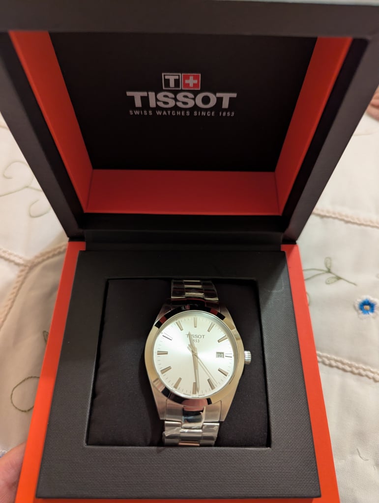 Found an adverts guy selling Tissots. Picked a nice simple, classy, uncontroversial, inoffensive, non-divisive Gentleman dress watch. I think it's lovely and hopefully the recipient will be pleased with it. It is a pleasing piece. Nice weight to it, and the bracelet is lovely.