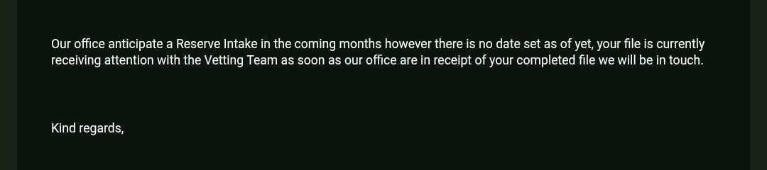 I wonder whether candidate location may have influenced how vetting is prioritised, as some areas might have a greater demand for reserves
