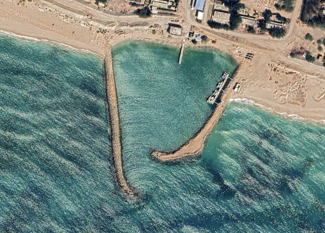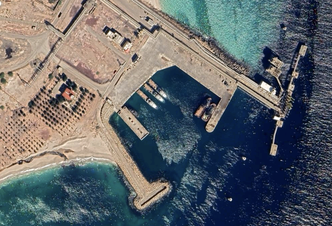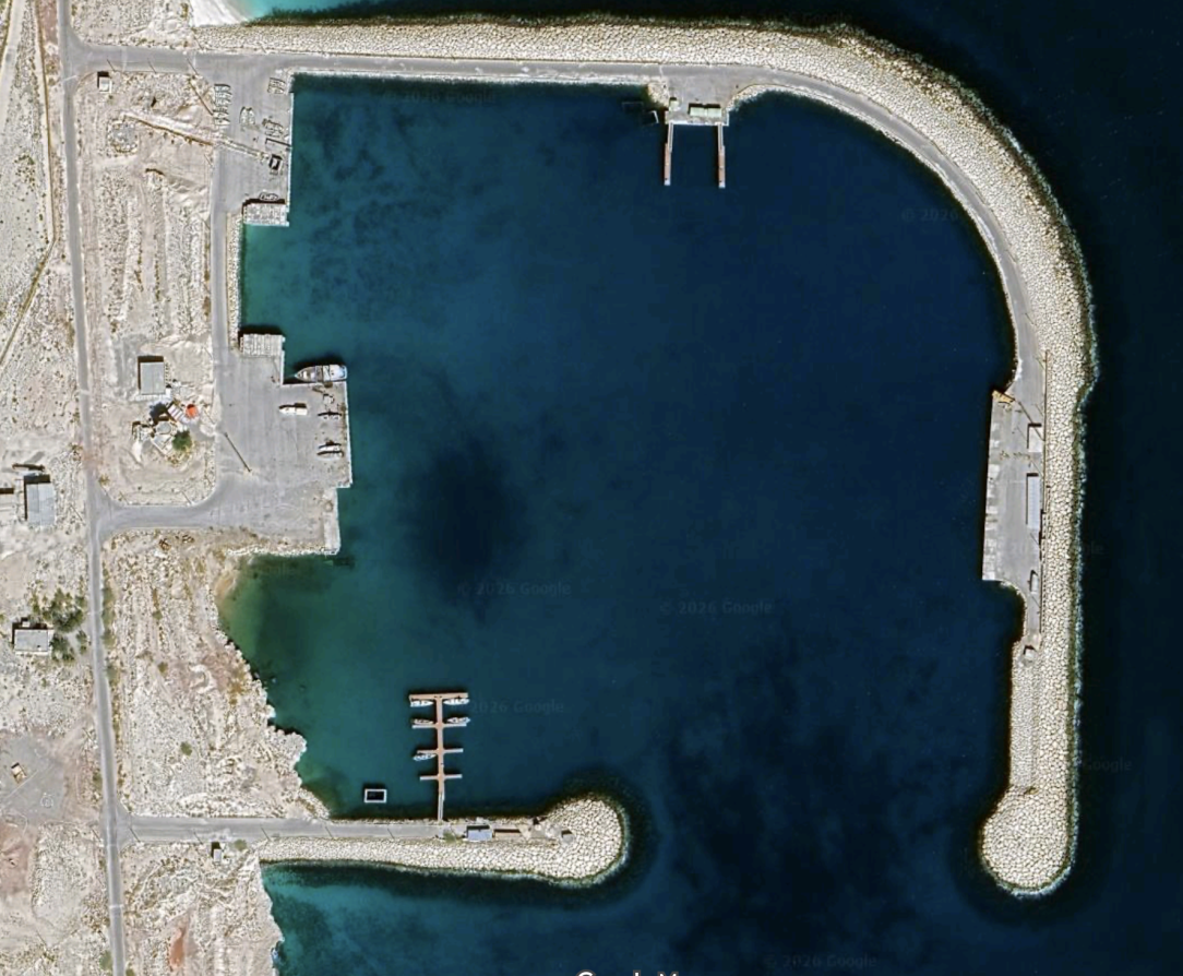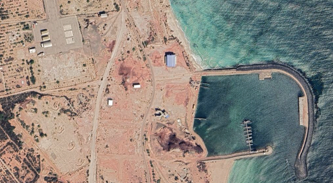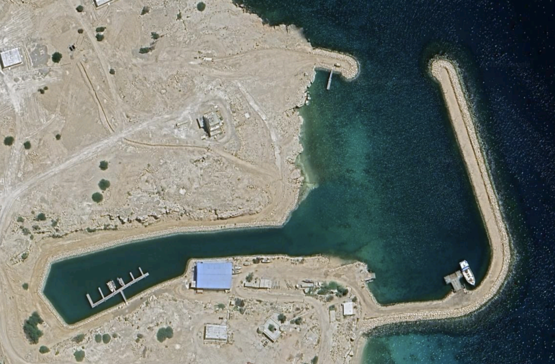 It may look like an ordinary fishing harbour at first glance, of the type that are legion all along the Iranian coast, but if you look more closely, you'll notice that things don't quite add up. The boats tied up at the pier along the eastern breakwater all have long and pointed hulls, optimised for speed, not manoeuvrability or ruggedness, which you'd expect from a fishing boat. To me at least, these boats look like the type of speedboat used by the IRGC.
