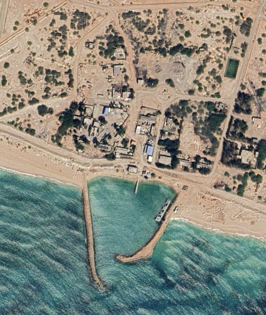 Whilst this harbour seems to lack the large boat lift seen at the Abu Musa base, the rest of the infrastructure is strikingly similar, with a pier for heavier vessels on the eastern breakwater, a slipway to get smaller boats into and out of the water, and a larger pier housing speedboats on the southern breakwater. This picture does show a dhow or similar civilian vessel tied up near what I presume to be the slipway, but this is a) not up to date imagery of course and b) the IRGC does fulfil coast guard like roles as well.