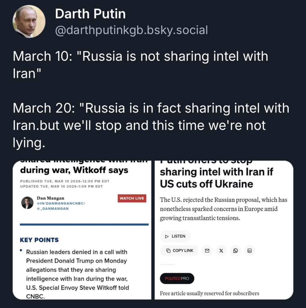 Starmer getting heavily criticised in the UK for allowing the US to use their bases to attack Iran. Trump insulted him about 20 times this week and even now is saying it should have happened sooner. Plus mocking their war dead from Afghanistan etc and calling them cowards earlier today. He just looks utterly pathetic.