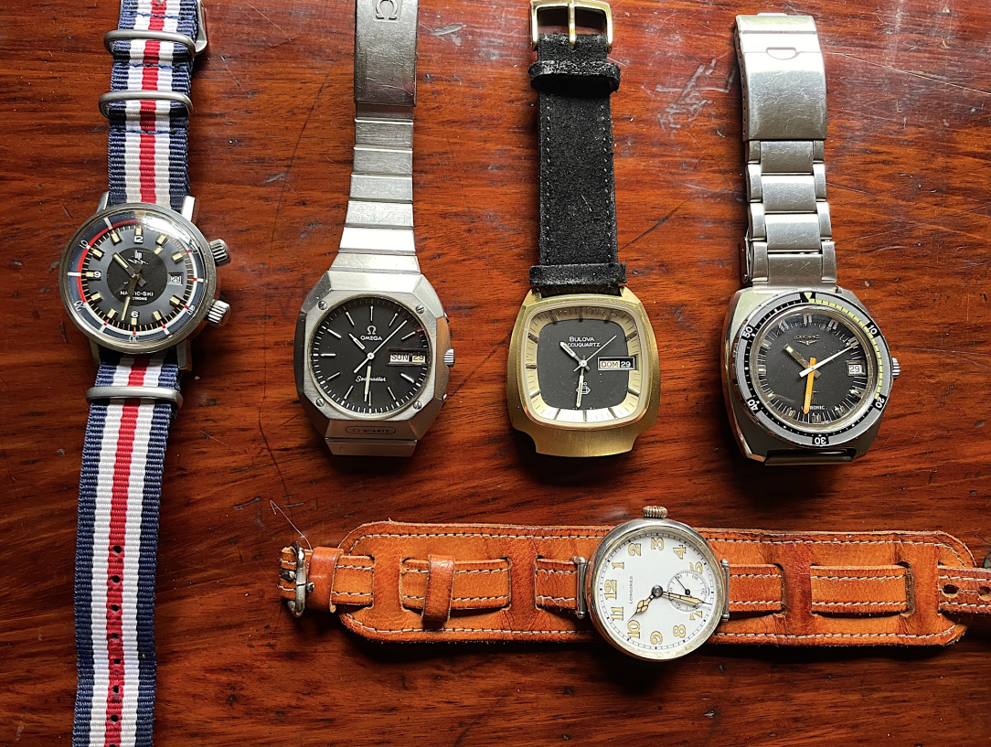 The oul spring forward on some of my leccy watches. The Omega being the easiest with its quickset hour hand. Wearing the century old reliable handcranker on the bottom. 🙂