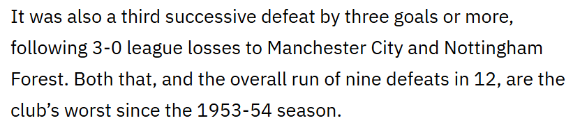 Another thing that hasn't happened since that relegation season in the 1950's - more than 5 league games without a win