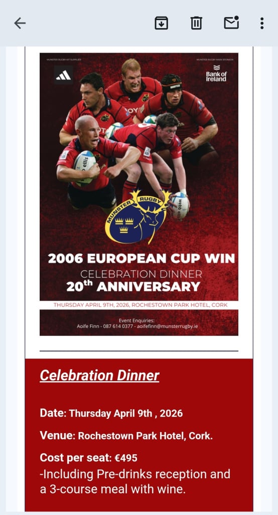 I see there's going to be a 20th anniversary dinner for the 2006 Champions Cup win. Tickets 500e a pop