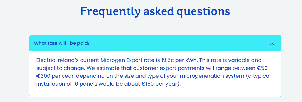 As i understand it with a Solis 5kw inverter, the most I can export is 5kw and if i exported 5kw in an hour that would mean i would get 25c x 5= €1.25 (ex VAT) per hour.
