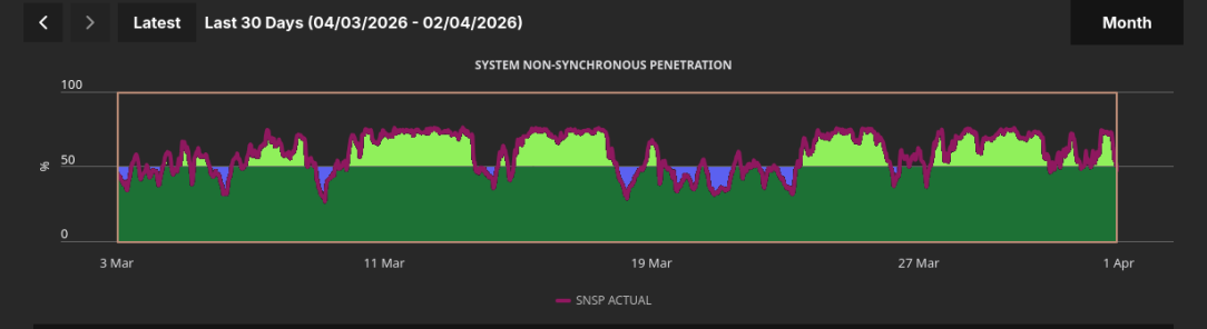 How do you figure that? How often does the SNSP chart hit 50% and what exactly would be involved in "doubling down" on renewables each time it happened?
