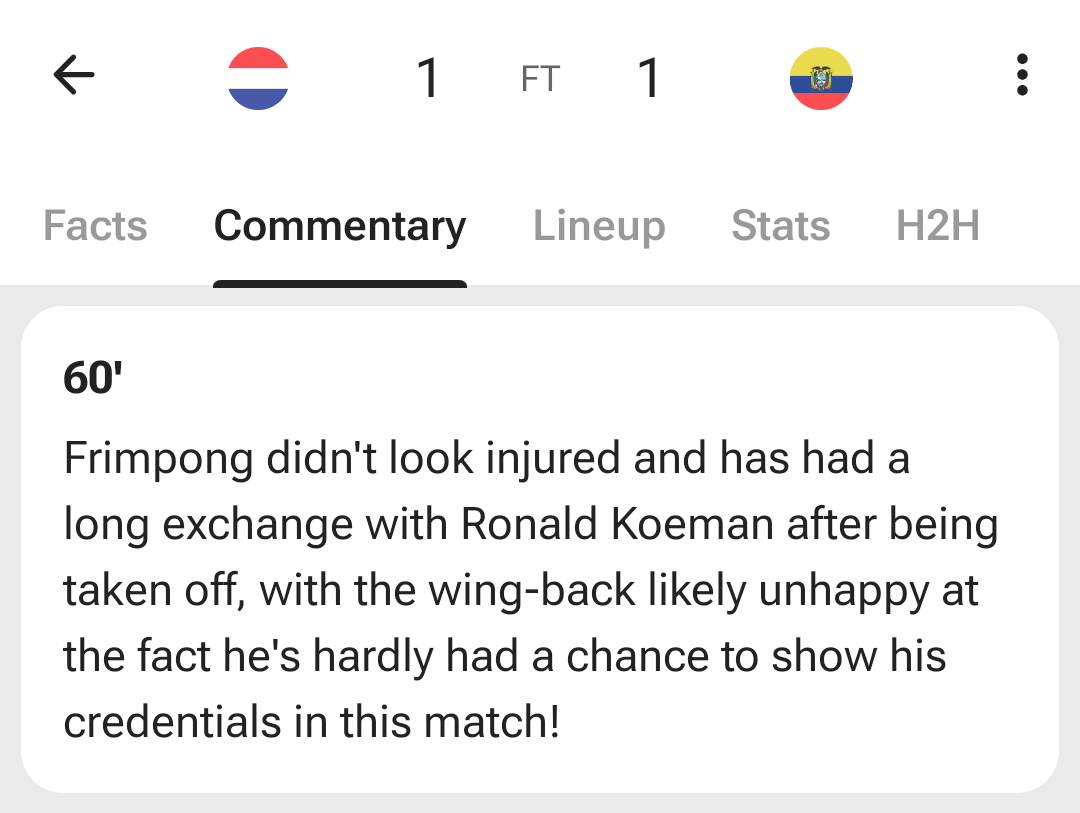 Yeah, just what I read initially, but obviously wrong. It wasn't actually twitter, it was the text commentary on the fotmob app which I thought would be more reliable...