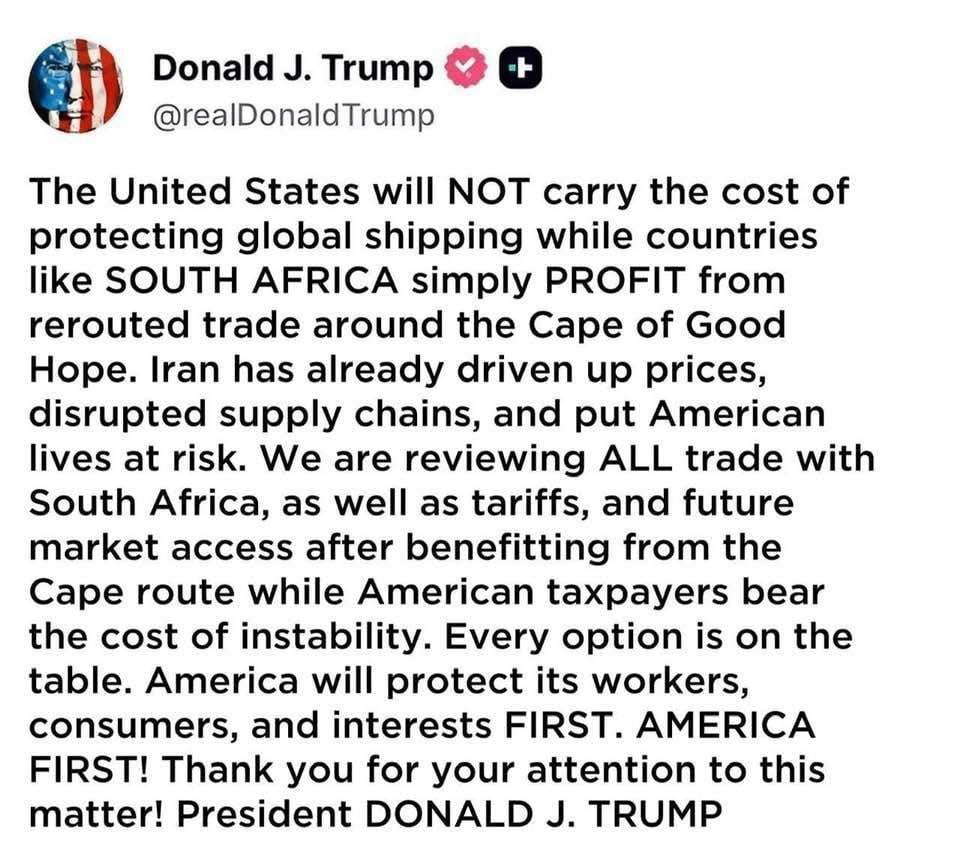 No Donald, you can not have South Africa until you finish your Iran!