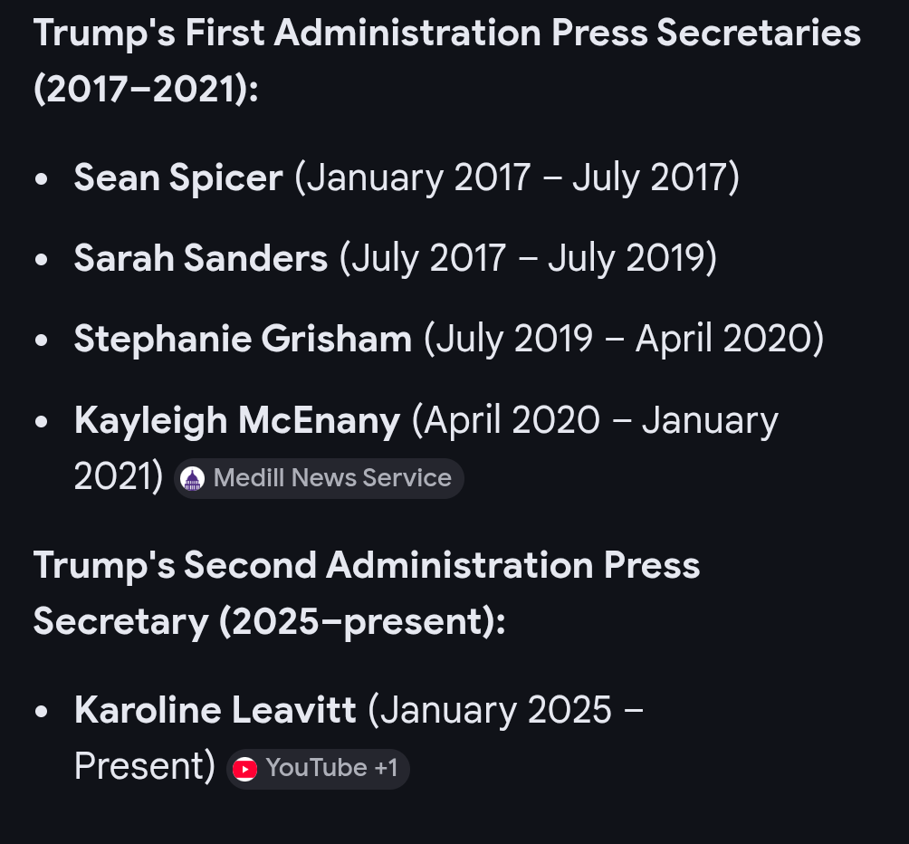 This is the full list, which doesn't include Scaramucci, who was comms director for 10 or 11 days. Awful for him but on the plus side, he became a unit of measurement for the length of tenure for Trump employees afterwards.