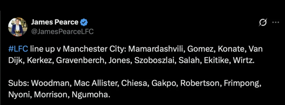 Slot did say in the press conference that it was a hard one to call for today because if you brought him on for a few minutes the game could end up going to extra time and you would have to sub him back off