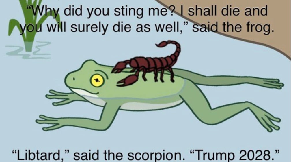 Do you read that 'frog and the scorpion' parable and think, '….I'd say these two will get across that river grand….' 🙄???