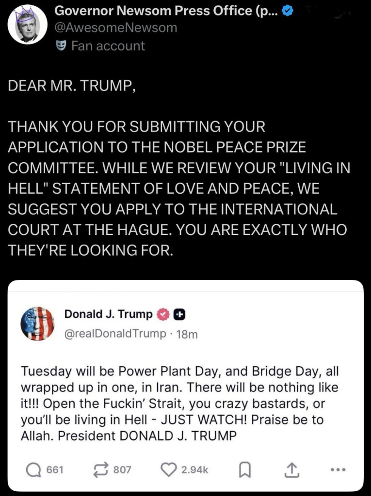 Newsom continues trolling Trump...