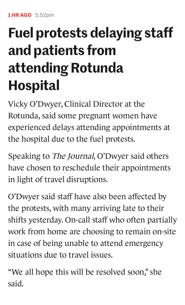 > “I’m proud to be blocking pregnant women, cancer patients and nurses from getting to hospitals!! 🇮🇪 #patriot”