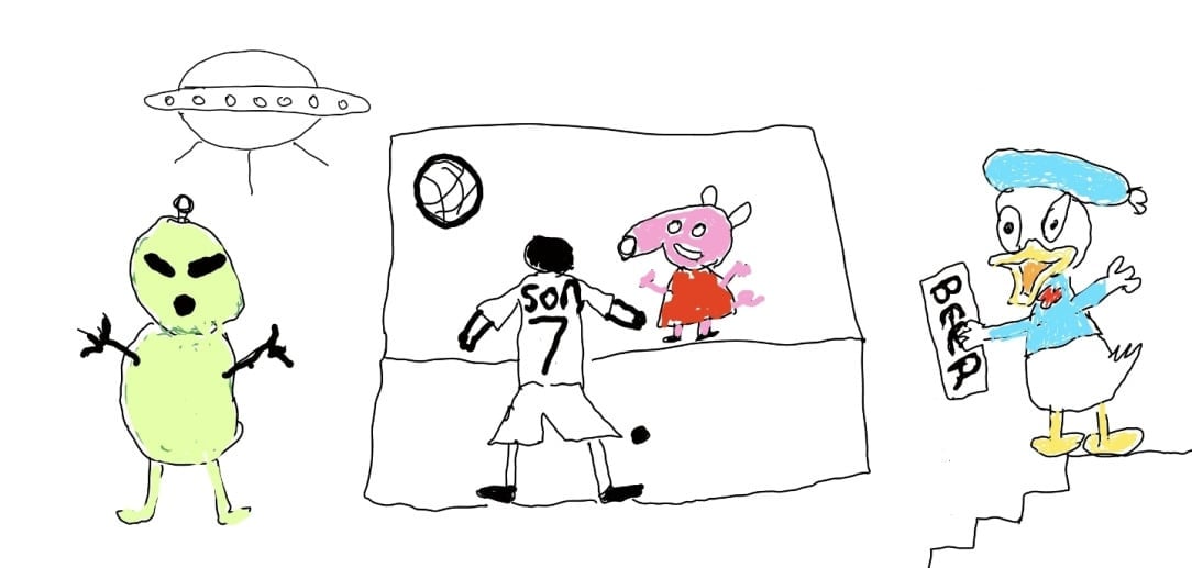 "Alien and Drunk Donald Duck watch Peppa Pig play football."