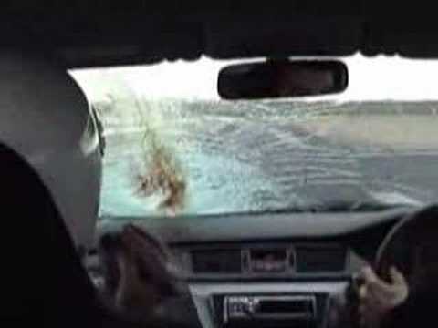 must be a decent enough and calm driver, to bring the car to a safe stop after having a bird smash through the window and destroy the inside of the car.