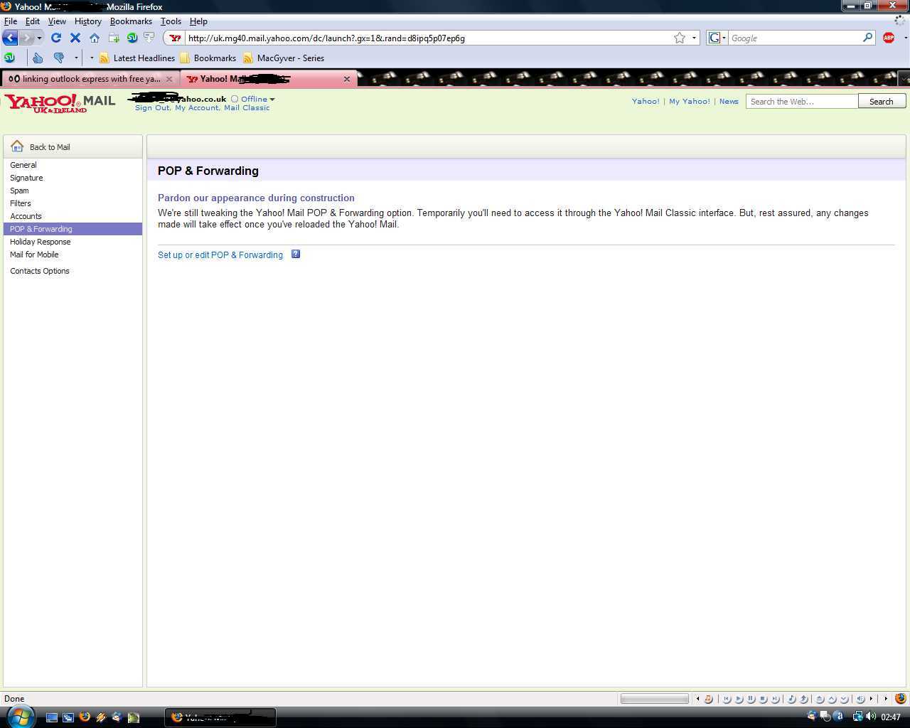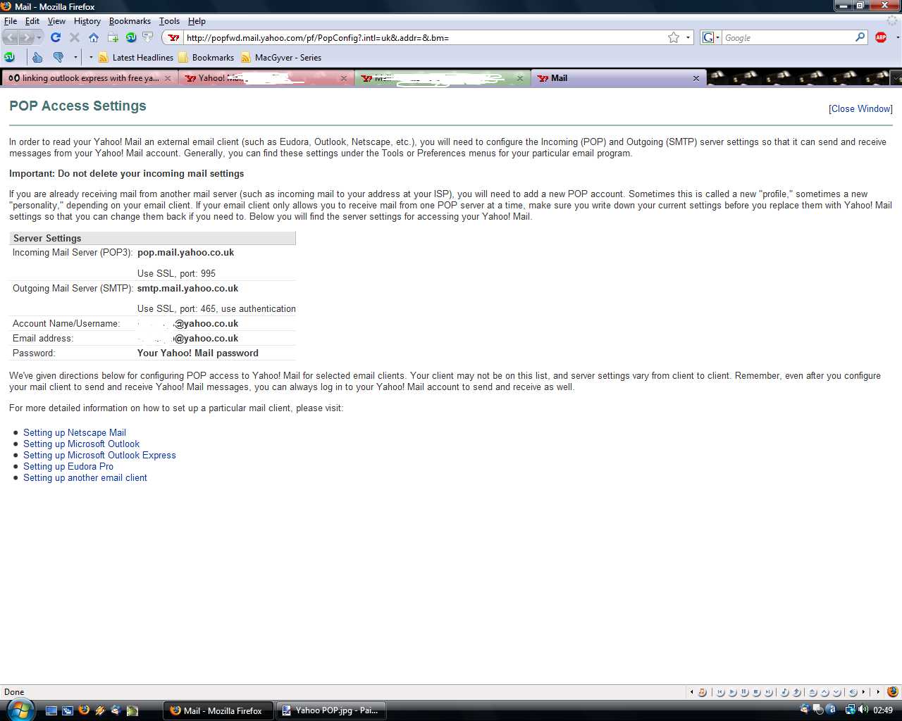 linking outlook express with free yahoo.ie mail account