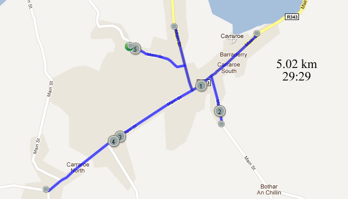 Despite the fact it was a cold windy evening, when I got started the cold eventually disappeared as I took off around Carraroe, feeling a bit rough to be quite honest. The legs felt heavy but soon enough I was forgetting about that and just knocked the run out, feeling great after it. Ah it's good to get back into it again.