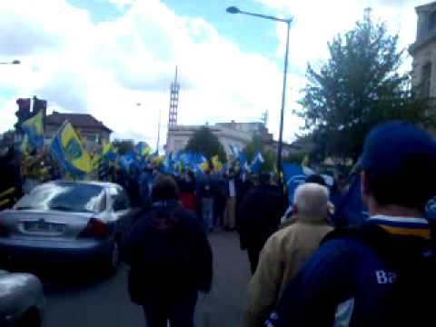 I stopped filming at that point because the Clermont fans had lined the street so closely that we had to walk through in single file as the shook our hands, wished us luck, welcomed us, and a few of them even joined in singing 'Allez les Blues' with us! I really can't overstate how good their fans were. Despite being within a bicep of winning, straight after the final whistle they came up wished us luck, said they would be up for us in the final, and wanted to swap scarves, hats etc. I got a very cool ASM beret! A real credit to their club.