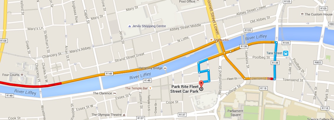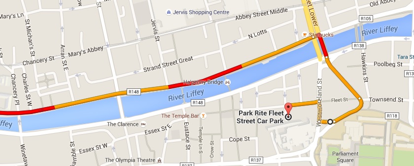 Best of luck navigating the N4/quays at rush hour though..... if I were you I'd be parking up somewhere out of town and getting a luas in.
