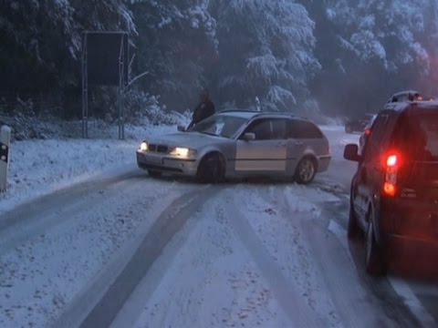 Even the Germans struggle driving on snow when they are not ready for it :D